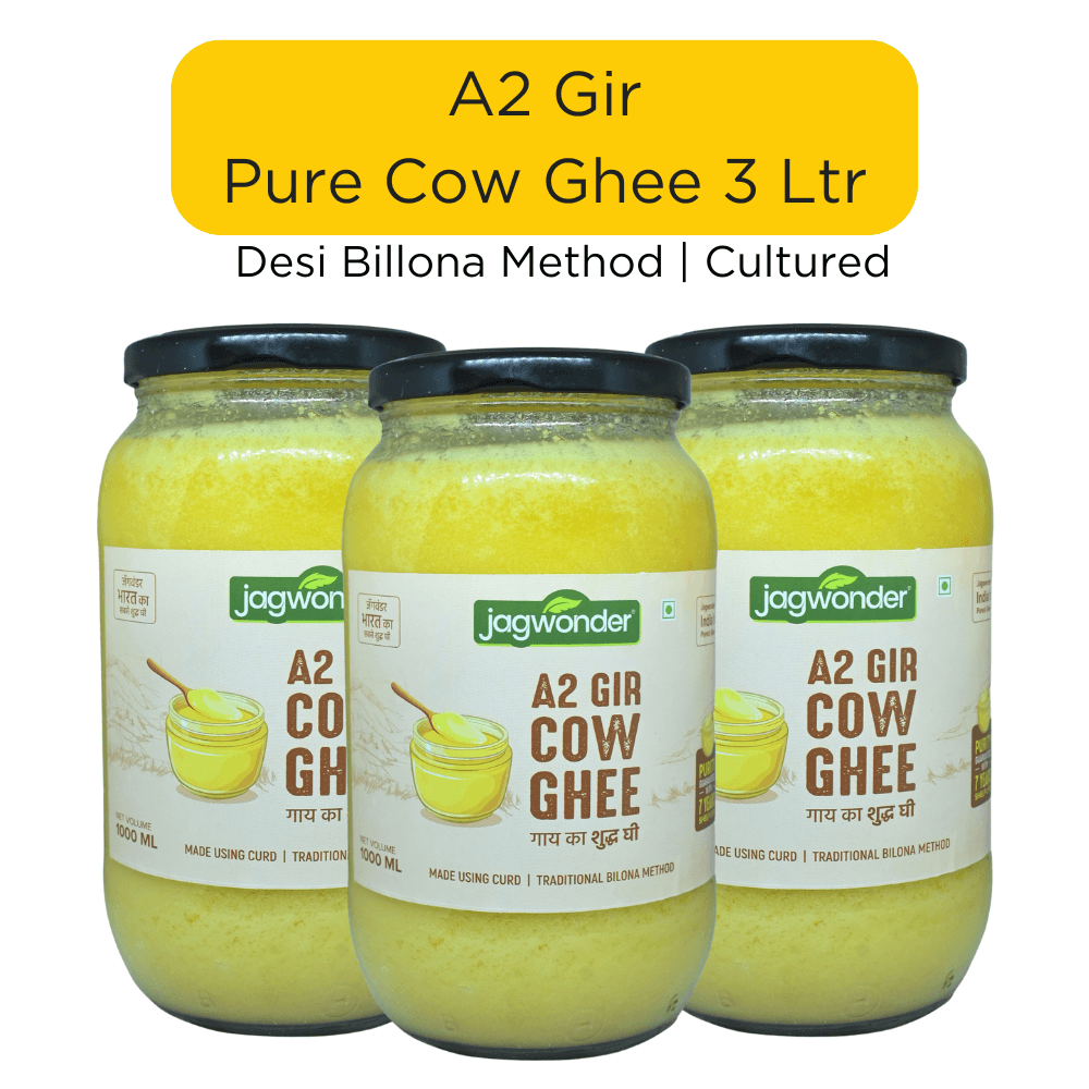 Unlock the Power of Tradition with Jagwonder A2 Gir Cow Ghee – 3 Litres (1L x 3 Pack)