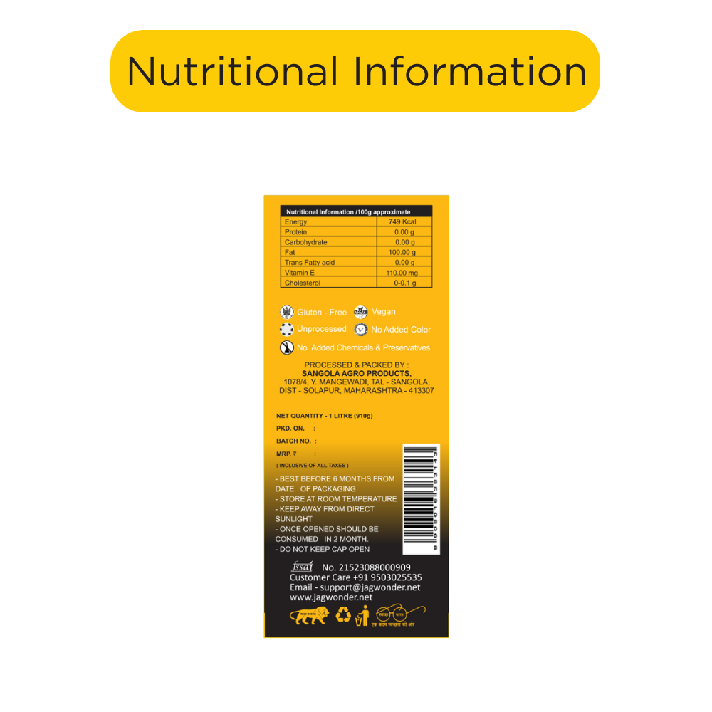 C. Lightning-Fast Delivery: We understand that you don not want to wait. With Jagwonder, you can count on same-day dispatch 99% of the time. It is our commitment to delivering freshness and goodness straight to your doorstep. Make Jagwonder Cold Pressed Oil your choice for healthier living and enhanced culinary experiences. With premium quality oil seeds, hygienic production, and rapid delivery, we take pride in bringing you the very best. Elevate your well-being and savor every meal with Jagwonder where thicker oil meets healthier lives.