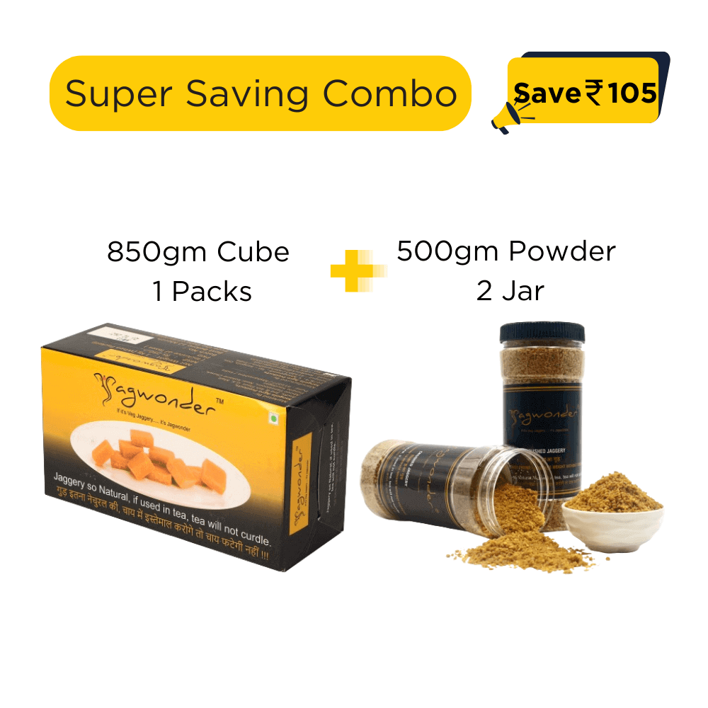 Jagwonder Jaggery Cubes 850gm + Powder 500gm (2pack)