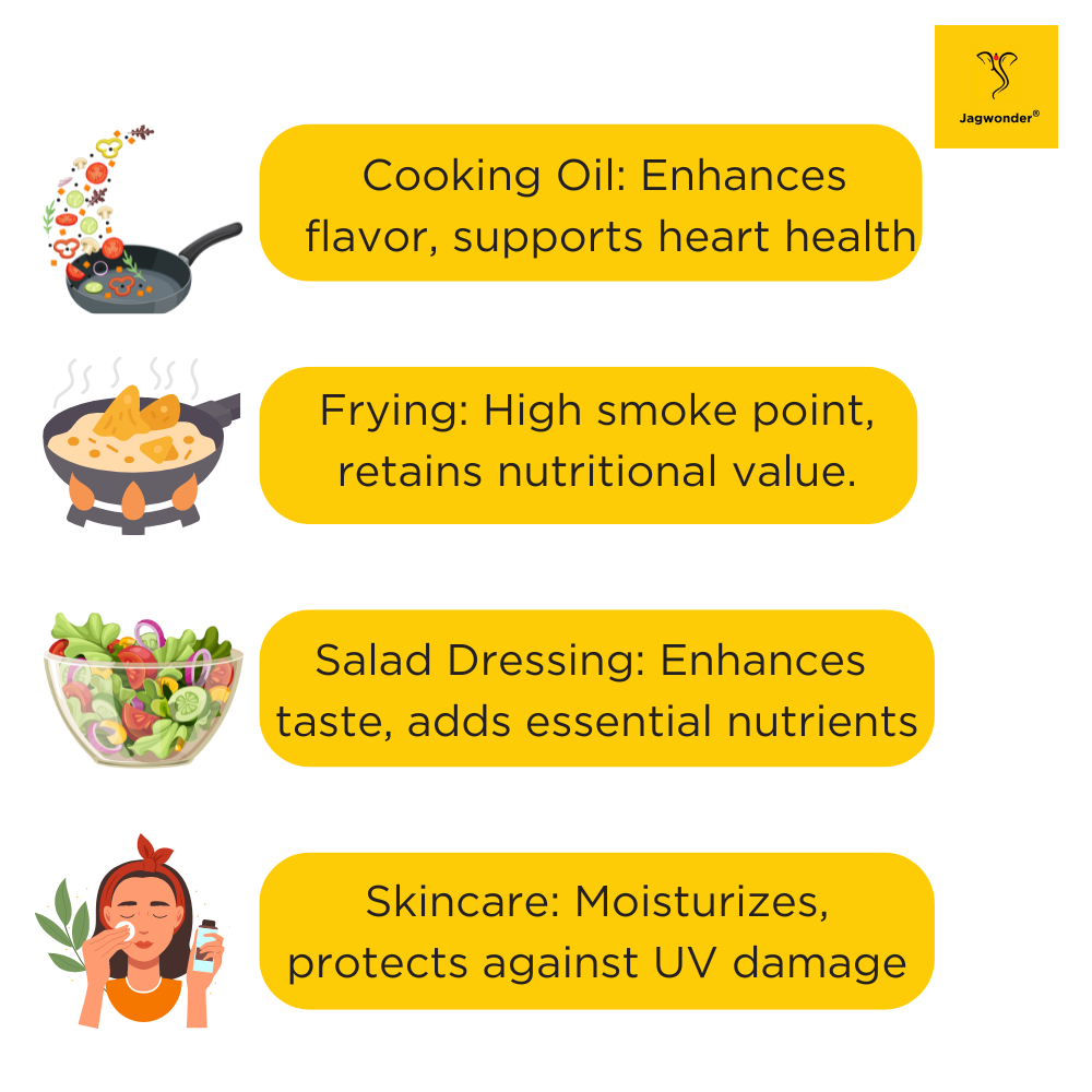 4. A Journey to Health: Jagwonder Cold Pressed Oil is not just a cooking essential; it is a wellness companion. Consume it consistently for three months, and you will witness remarkable improvements in your health parameters, from cholesterol levels to joint pain and weight loss. Our oil enhances digestion and brings transformative health benefits when used as recommended.